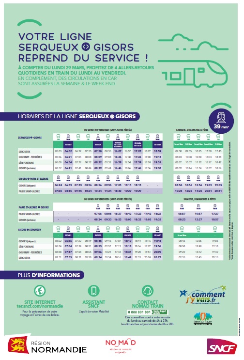 A partir du 29 mars 2021, la ligne Serqueux-Gisors a été remise en circulation pour le transport des voyageurs avec deux arrêts prévus à Gournay-Ferrières et à Sérifontaine.
