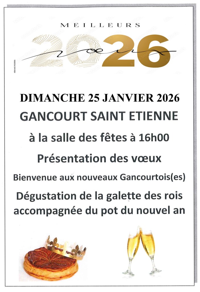 AGENDA ET FESTIVITES Le 21 décembre 2025 par djacky76dans Agenda et festivités, INFORMATIONS LOCALES – VŒUX 2026 – Assemblée générale de Loisirs Gancourtois Note LGTélécharger Partager : Imprimer(ouvre dans une nouvelle fenêtre) Imprimer Email a link to a friend(ouvre dans une nouvelle fenêtre) E-mail Partager sur X(ouvre dans une nouvelle fenêtre) X Partager sur Facebook(ouvre dans une nouvelle fenêtre) Facebook J’aime chargement…